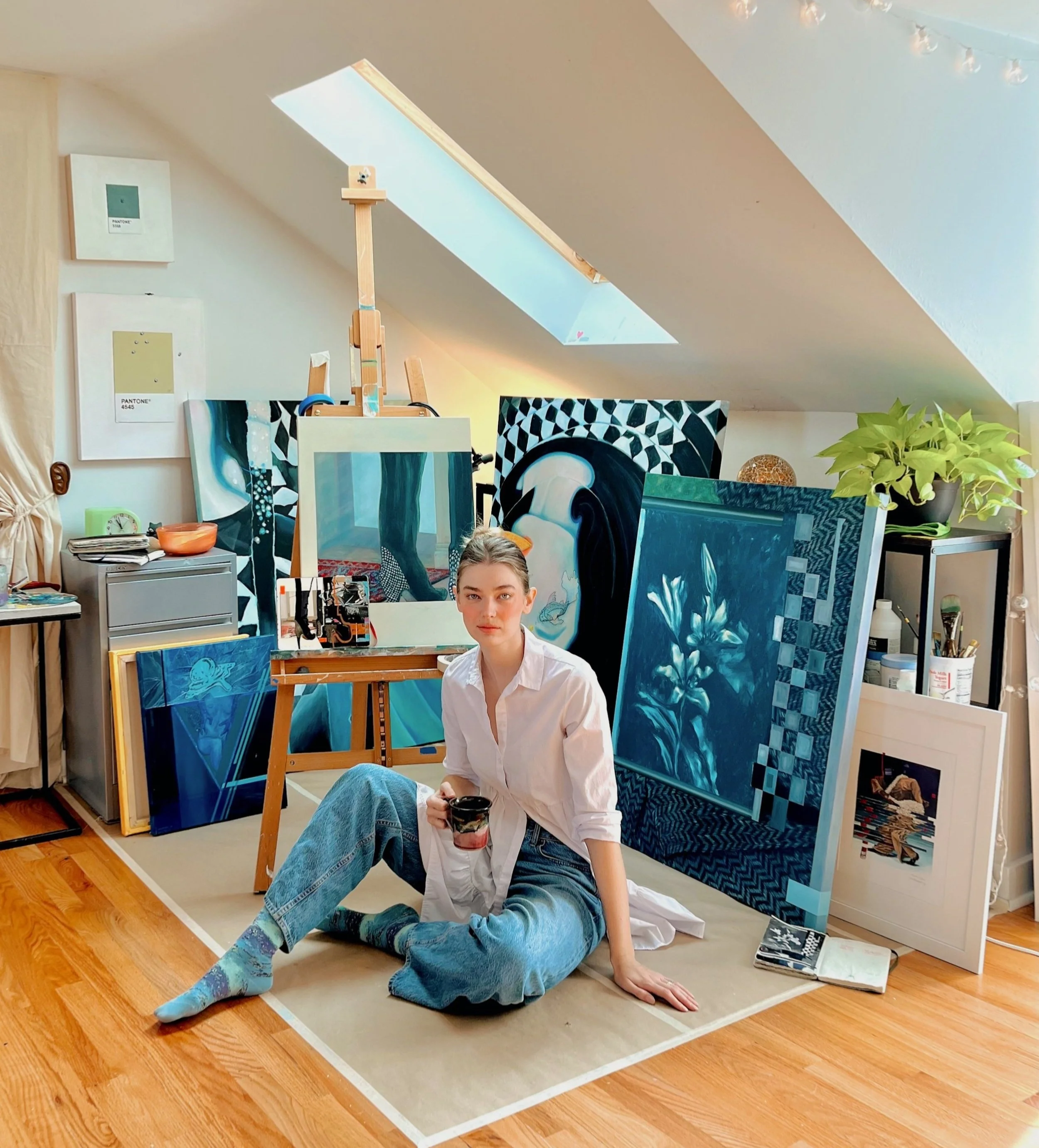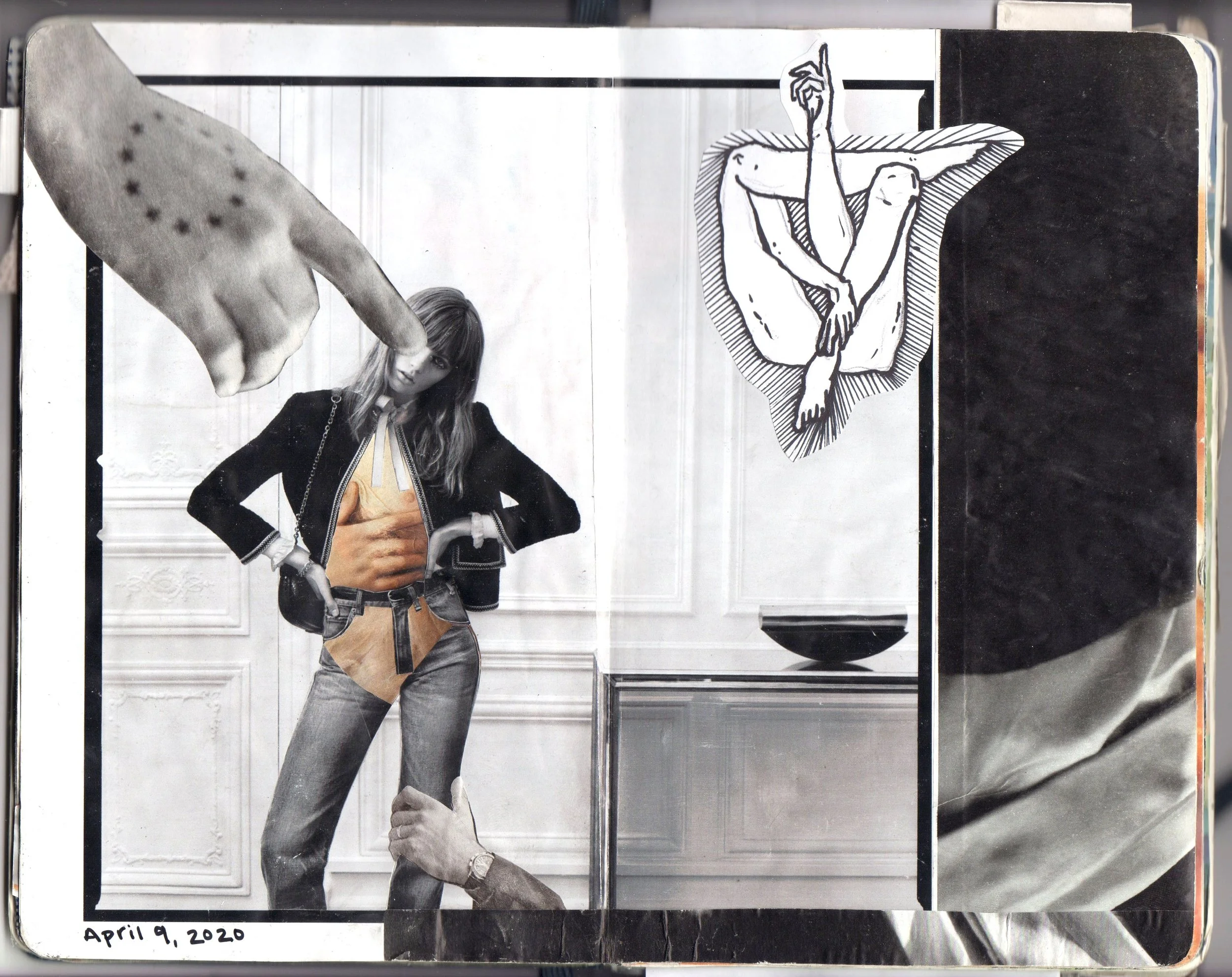 My art process begins by playing with paper. I craft collages (usually in my notebook) with mixed media to create compositional studies for my paintings. By embracing the idea of life as a collage, I hope to illustrate the unique life story of each human while emphasizing the importance of shared narratives and the richness that community brings to the human experience.